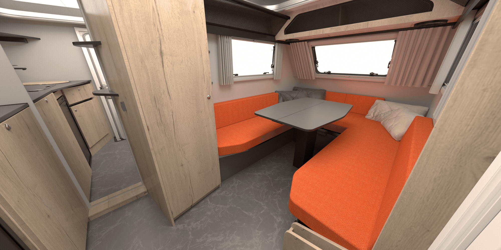 Maak kennis met de GetAway caravan: de perfecte combinatie van compact en ruim! Met zijn slanke ontwerp, dat niet breder is dan je auto, is deze caravan ideaal voor wie graag licht en comfortabel reist, zelfs met compacte of volledig elektrische auto’s. De aerodynamische vorm zorgt ervoor dat de GetAway soepel en stabiel achter je auto ligt, met minimale luchtweerstand voor een optimale rijervaring.